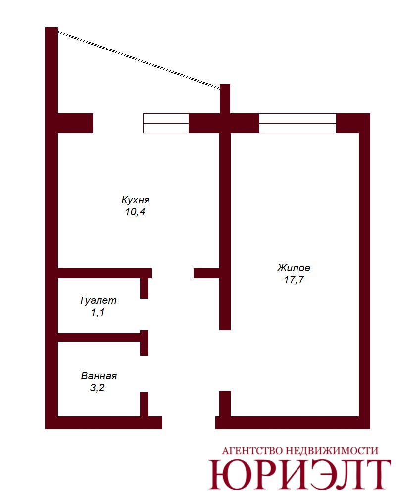 Общая площадь квартиры 39,5 кв.м., жилая - 17,7 кв.м., кухня - 10,4 кв.м.