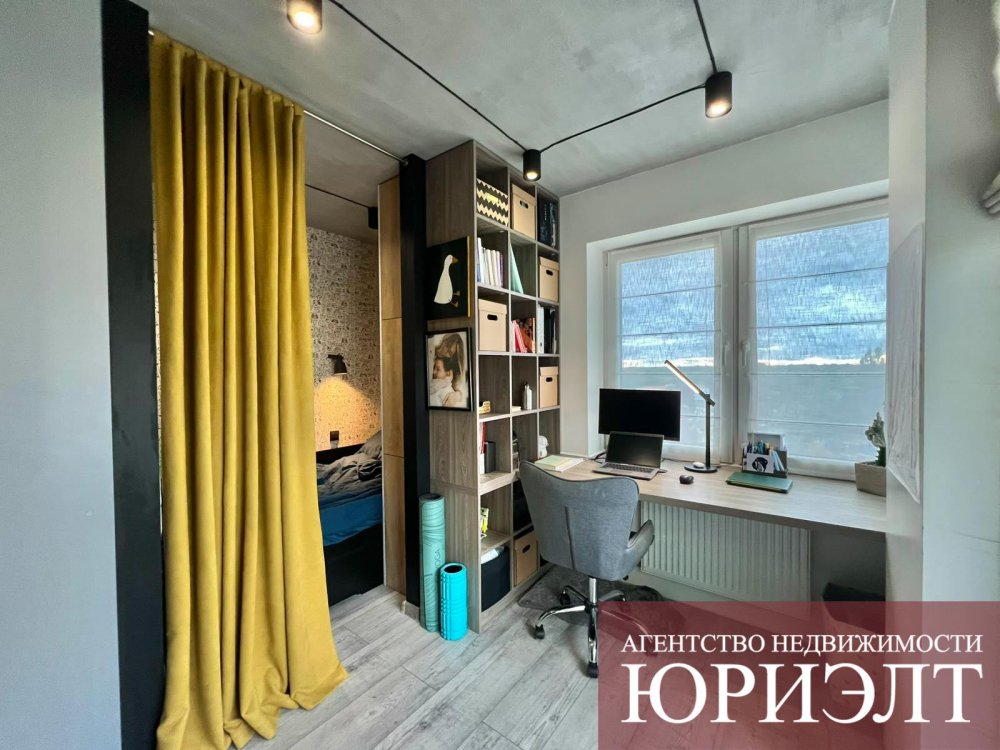 Находится на 9-м этаже монолитного 16-этажного дома, 2016 года постройки, расположенного по ул. Фомина. Квартира с оригинальной планировкой на 40,5 м2: жилая комната в 17,5 м2 разделена на 3 зоны с привлекательным балконом в пол, полностью оборудованная кухня 9,9 м2 с выходом на панорамную лоджию, совмещённый санузел.
