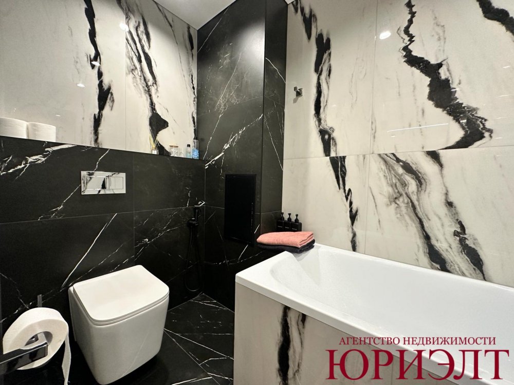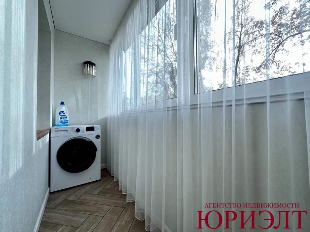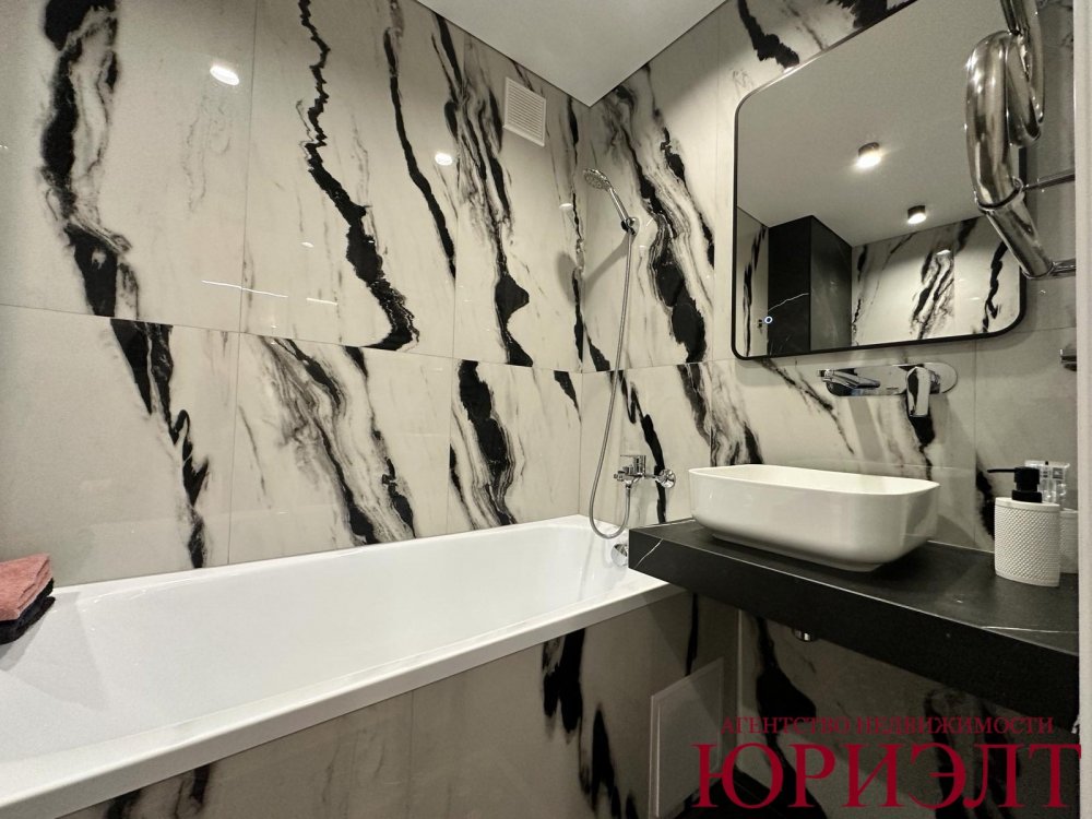В квартире выполнен дизайнерский ремонт: стильный интерьер, натяжные потолки, качественные полы и плитка, установлен кондиционер. Огромная лоджия стала полноценной частью жилого пространства.
