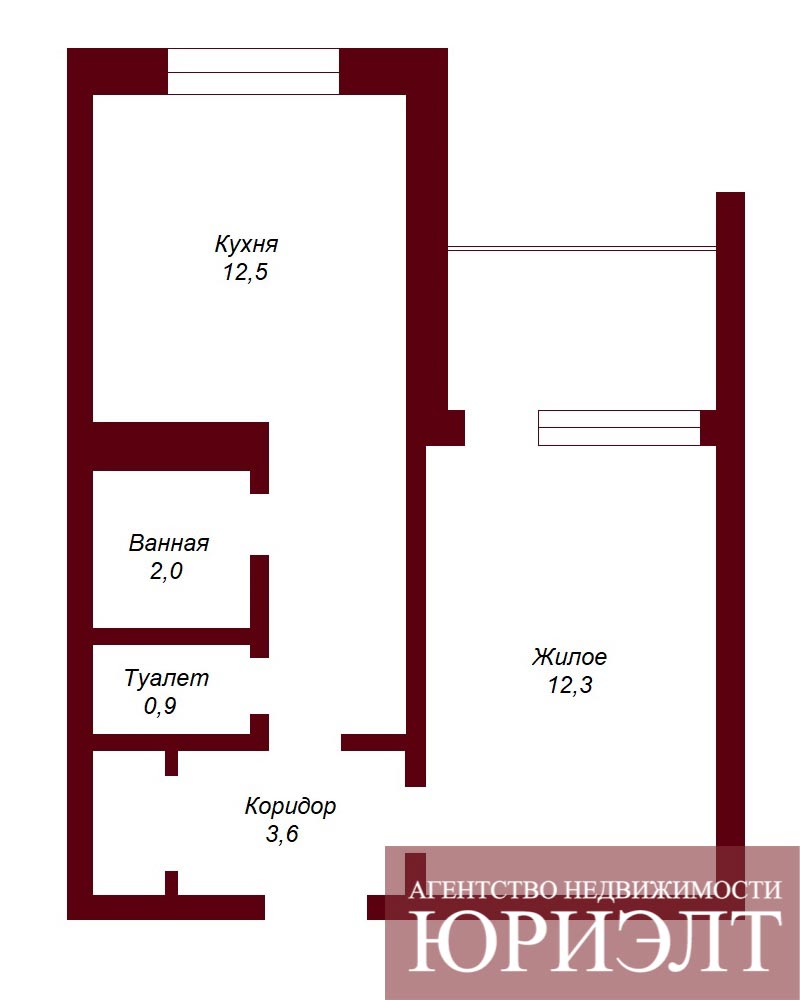 Общая площадь квартиры составляет 32.5 м², жилая зона - 13 м², кухонная зона - 13 м².