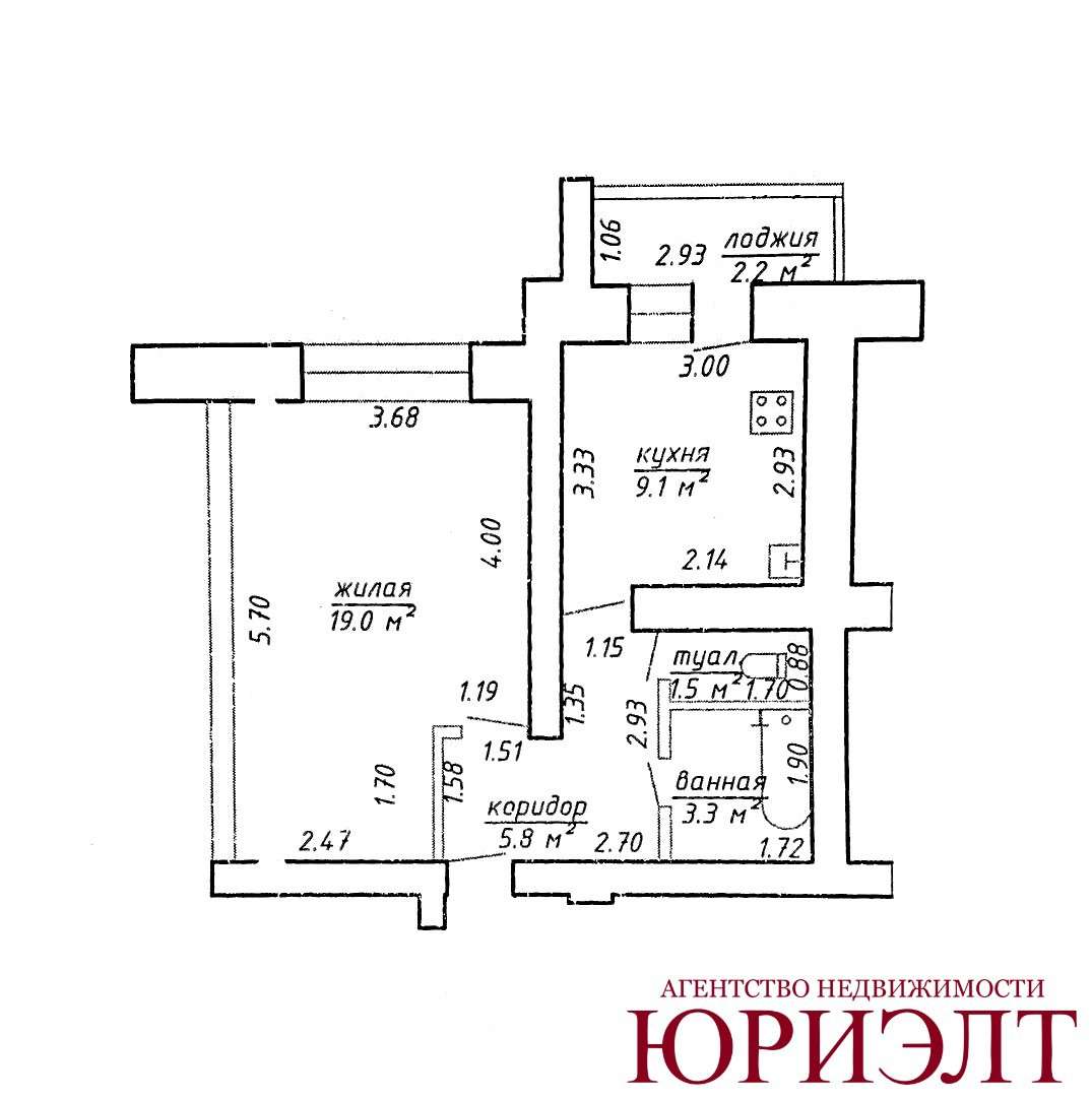 Кухня – 9,1 м² с выходом на застекленную лоджию.