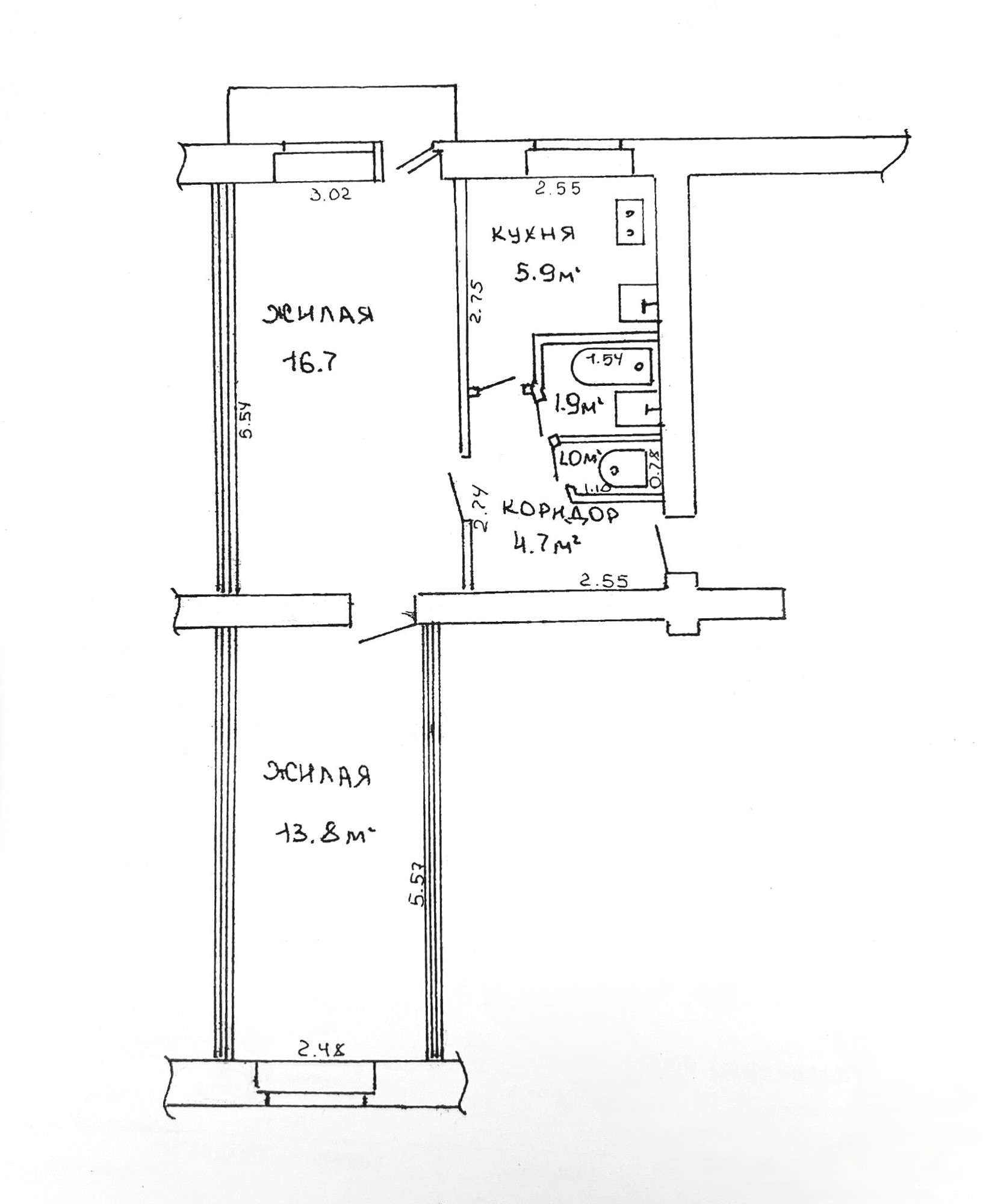 * санузел – раздельный;