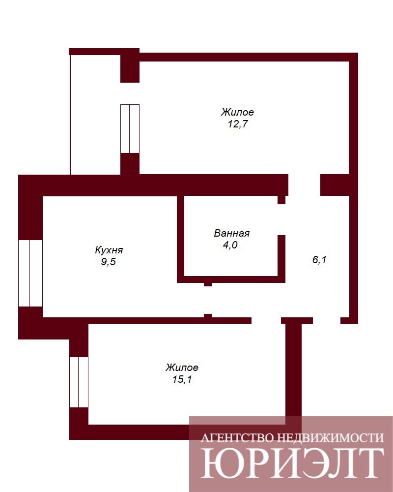 Общая площадь по СНБ: 48,4м², жилая площадь: 27,8м², кухня 9,5м².