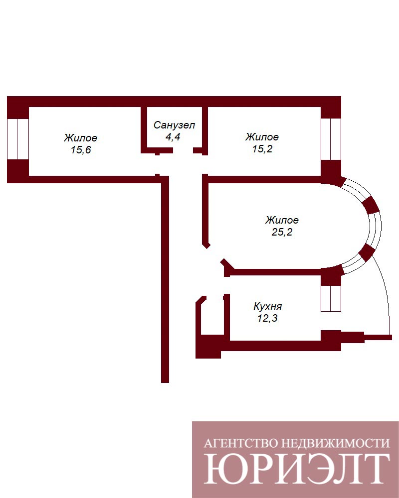 - Кухня — 12,5 м² с выходом на большую лоджию