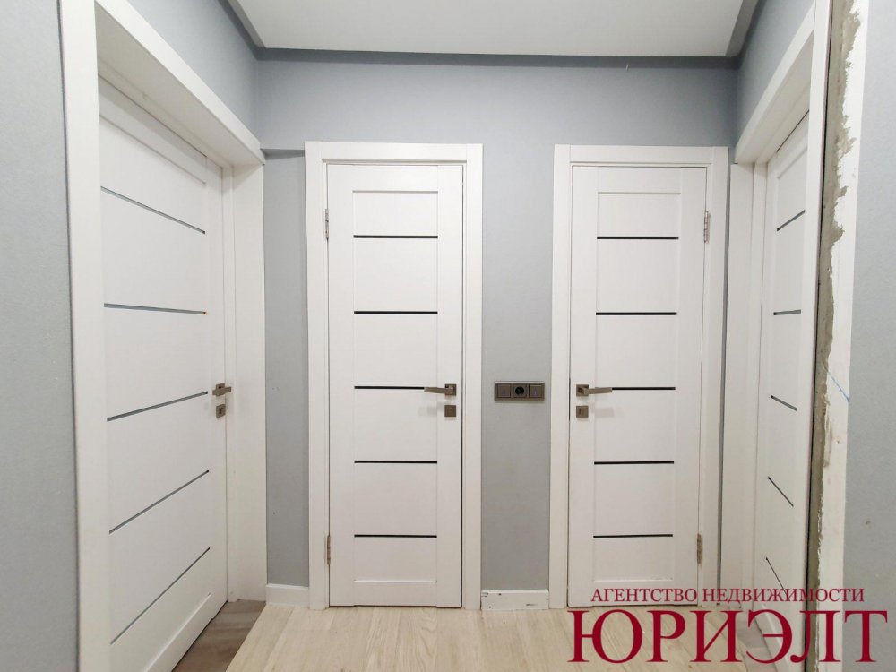 В квартире выполнен современный ремонт. Установлены стеклопакеты ПВХ. Потолки подвесные с точечной подсветкой и выводом под дополнительное освещение. Входная дверь металлическая, межкомнатные – МДФ. Санузел и ванная комната облицованы плиткой, выполнена инсталляция.