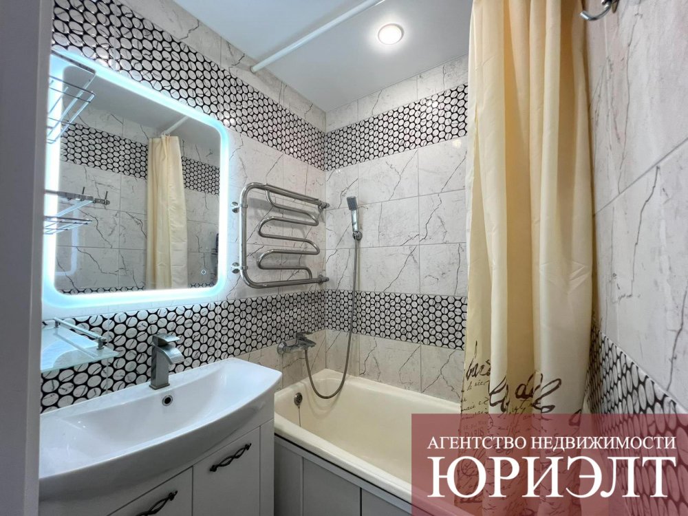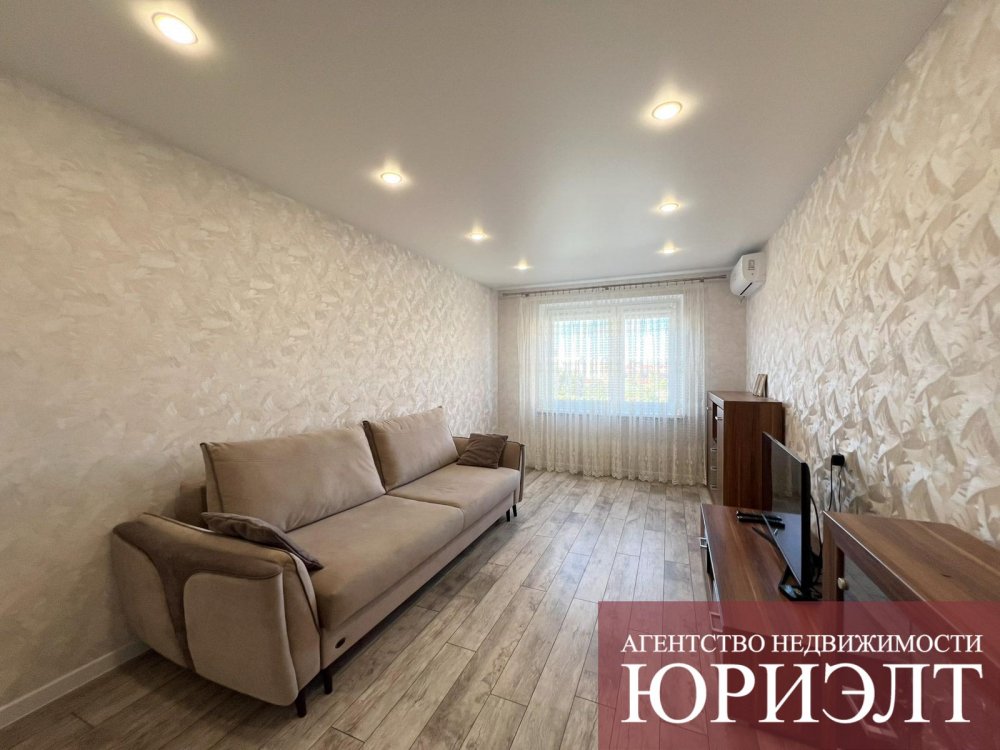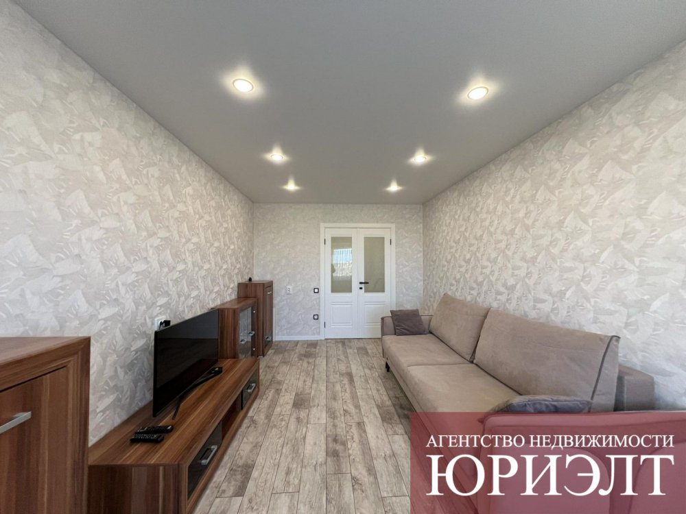 В квартире выполнен хороший ремон: напольное покрытие - плитка/ламинат на стяжке в один уровень, стены - оклеены обоями, потолок - натяжной, заменена электрика и сантехника.