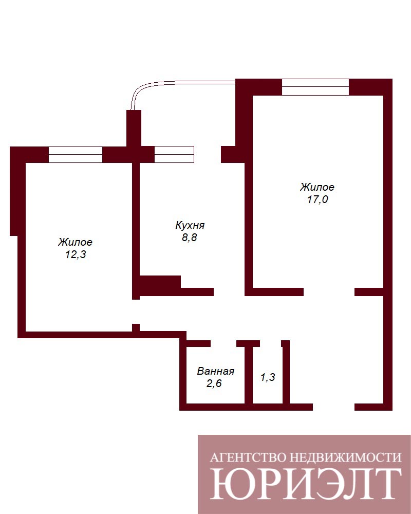 Общая площадь 55,4 м², жилая - 29,3 м², кухня - 8,8 м².