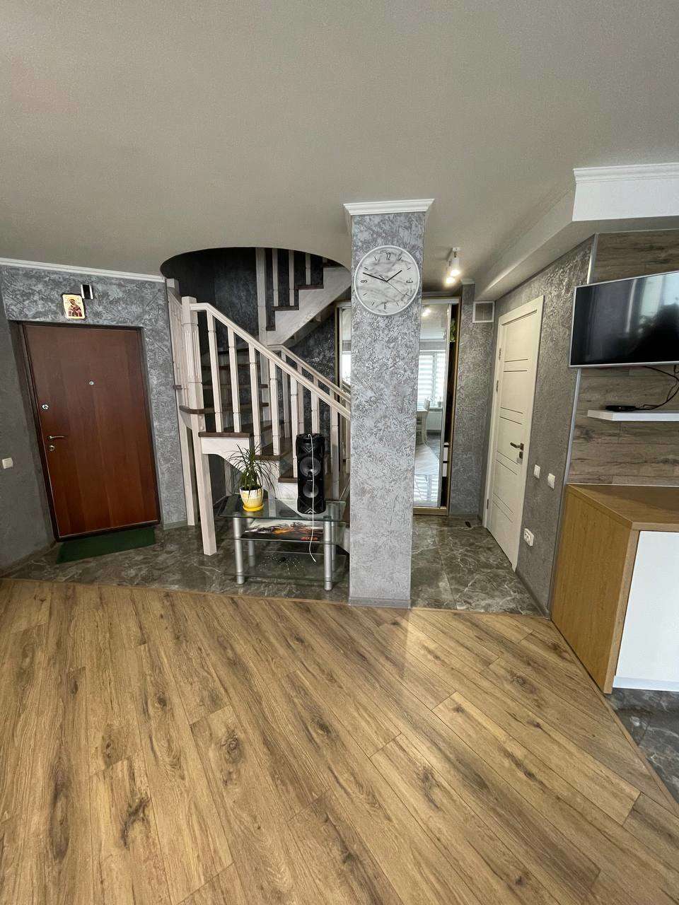 Продается комфортная, современная двухуровневая 3-комнатная квартира в центральной части города по улице Первомайская, д. 55. Располагается на 5 и мансардном этаже 5-этажного жилого дома 2016 года постройки. Общая площадь по СНБ 72,9 м², жилая 25,2 м², кухня 31,7 м². Металлическая входная дверь, межкомнатные двери экошпон. Пол - ламинат, плитка. Продуманная планировка обеспечивает удобство и функциональность. Ремонт выполнен с применением качественных материалов. На первом этаже: гостиная, совмещенная с кухней - 31,7 м2, санузел, выход на лоджию. На стенах декоративная штукатурка потолок снежка, окна ПВХ. Лестница на второй этаж - массив. Второй этаж: две жилые комнаты, совмещенный санузел. Пол - ламинат, на стенах - обои, потолок - снежка, окна - ПВХ. Продается частично с мебелью. В шаговой доступности д/с, школа, магазины, центральный рынок, Национальный банк. Всего в нескольких минутах ходьбы находится остановки общественного транспорта, что обеспечивает легкий доступ ко всем уголкам города.