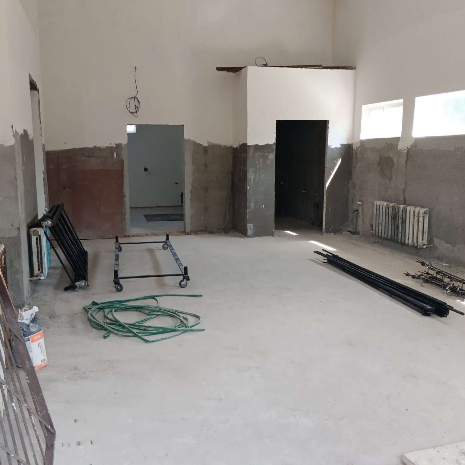 Производственное здание в процессе реконструкции, произведен черновой ремонт помещений, ремонт коммуникаций - водопровод и канализация центральные, отопление - твердотопливный котел (есть проект на подвод газа, а также разрешение на электрическое отопление), электричество - 380Вт.
